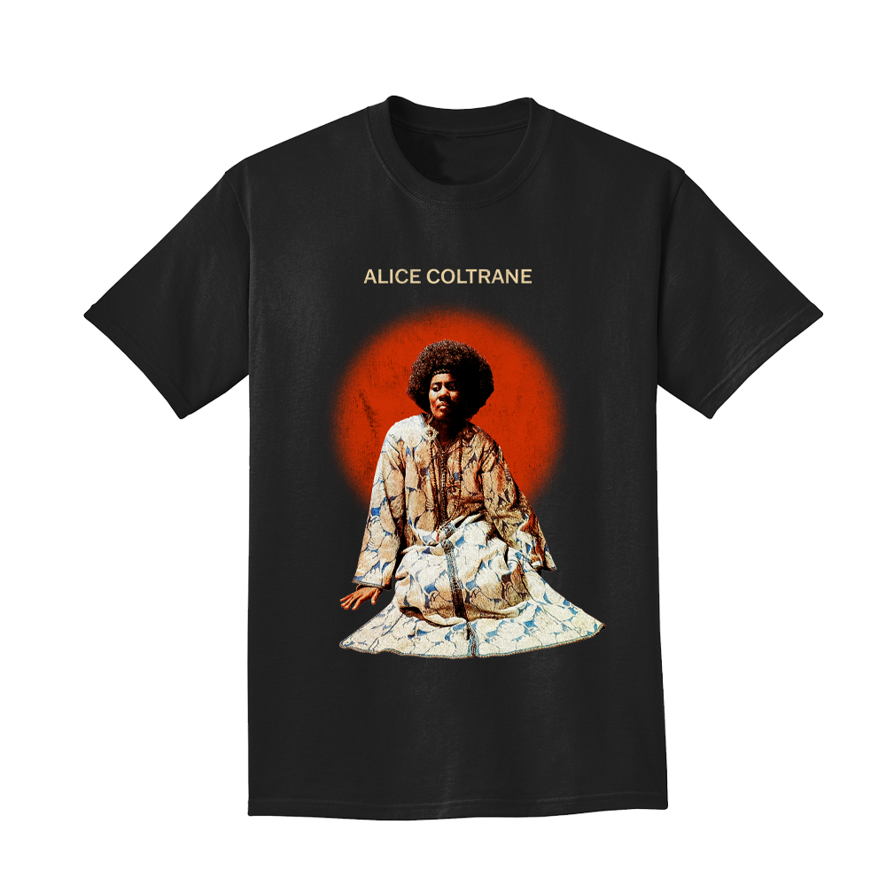 Exclusive Alice Coltrane "Radiance" design printed on a black Port and Co. garment.